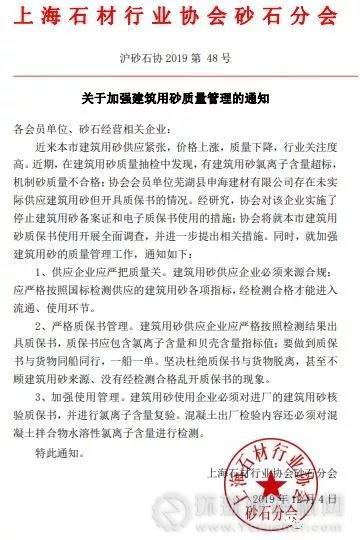 日前,上海石材行業協會砂石分會發布《關于加強建筑用砂質量管理的通知》。