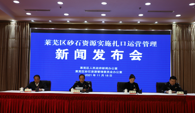 11月18日下午,萊蕪區召開砂石資源實施扎口運營管理新聞發布會。萊蕪區委宣傳部、區自然資源局、區公安分局、山東嬴州資源開發有限公司有關負責人以及新聞媒體記者參加發布會。