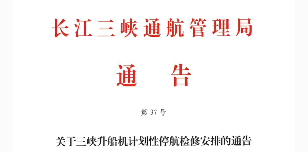 根據(jù)《長航局關(guān)于2022年三峽升船機計劃性停航檢修有關(guān)事宜的批復(fù)》(長航函道〔2022〕251號)有關(guān)要求,現(xiàn)將2022年三峽升船機計劃性停航檢修安排通告如下: